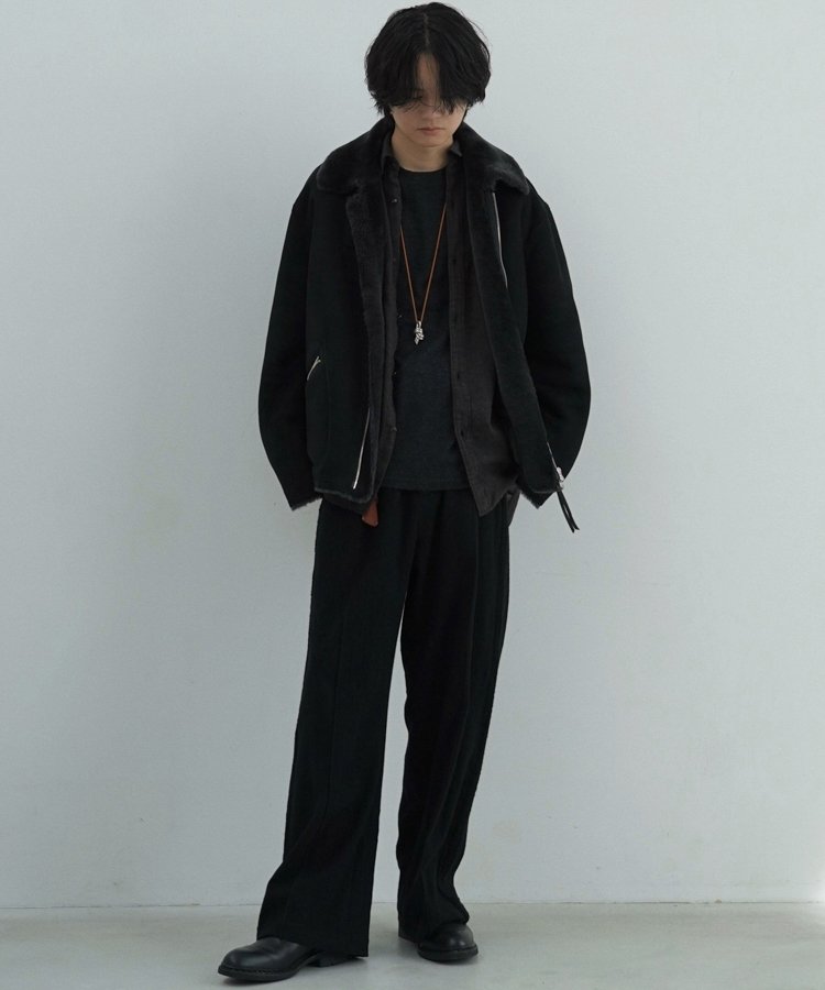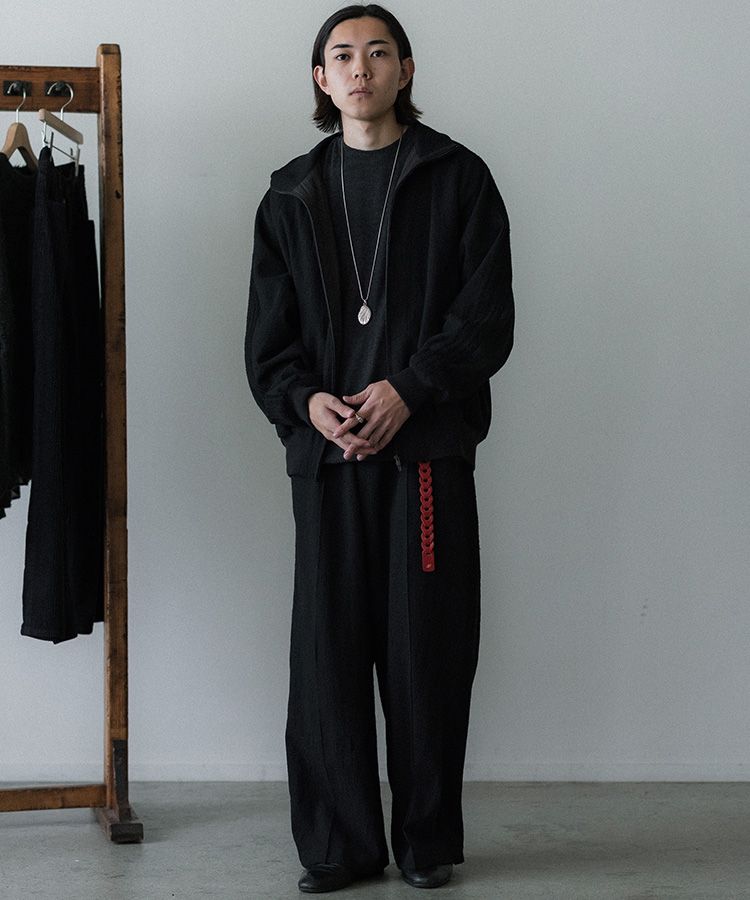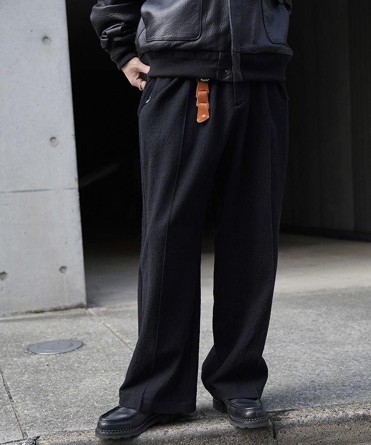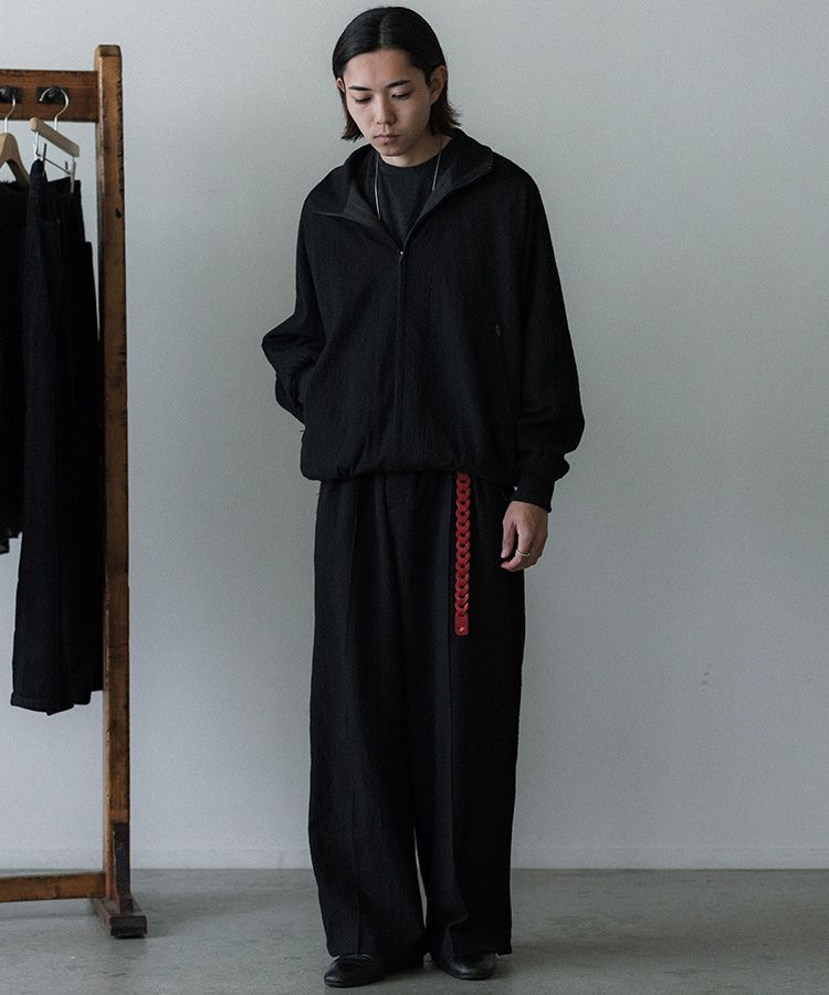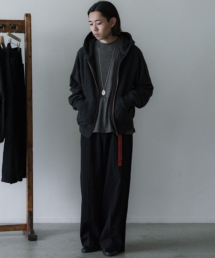 限界まで縮絨加工とワッシャー加工を施し、ジャージ素材のような膨らみとヴィンテージ感ある表情に仕上げました。