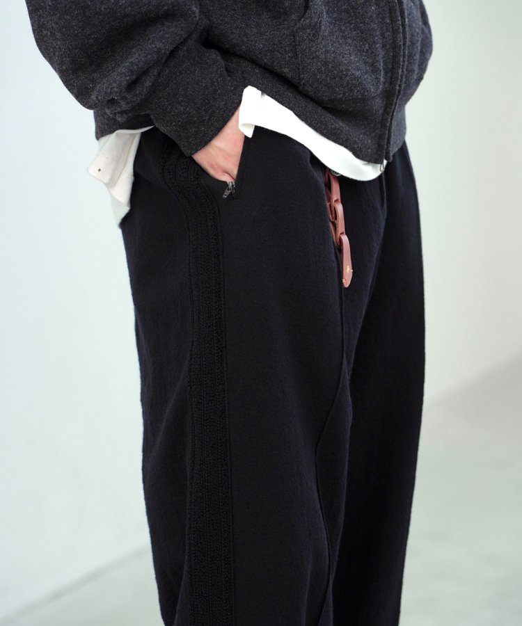 センタークリースをステッチで固定することで、トラックパンツらしいディテールを表現。