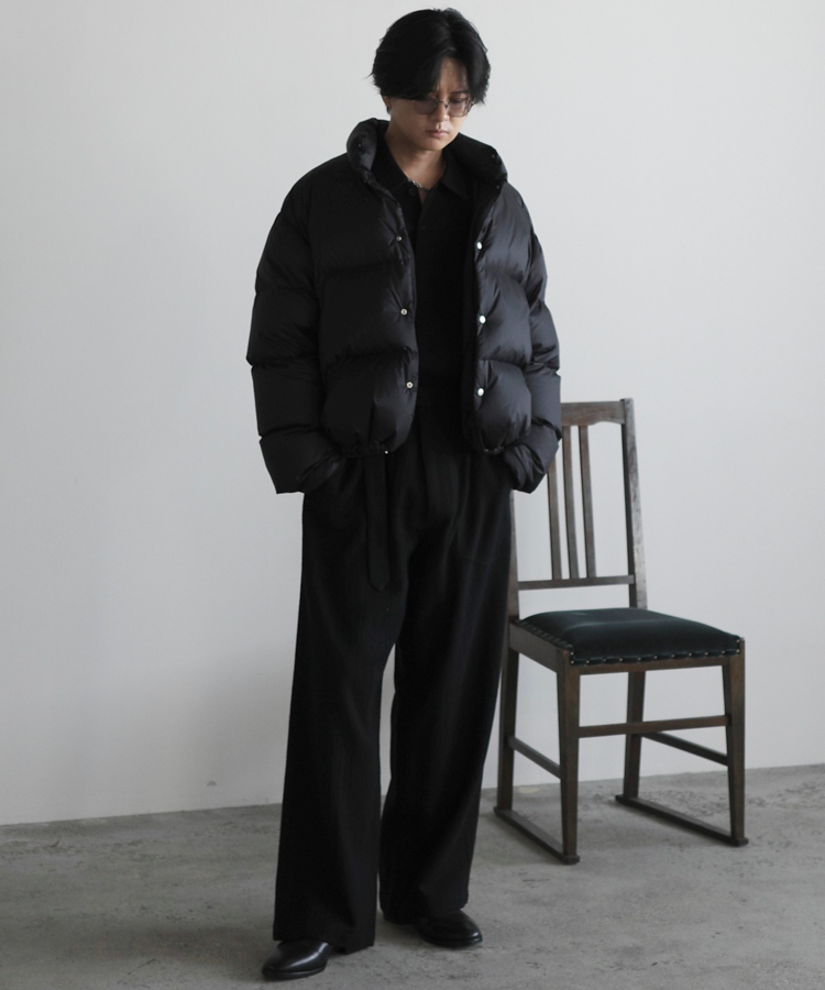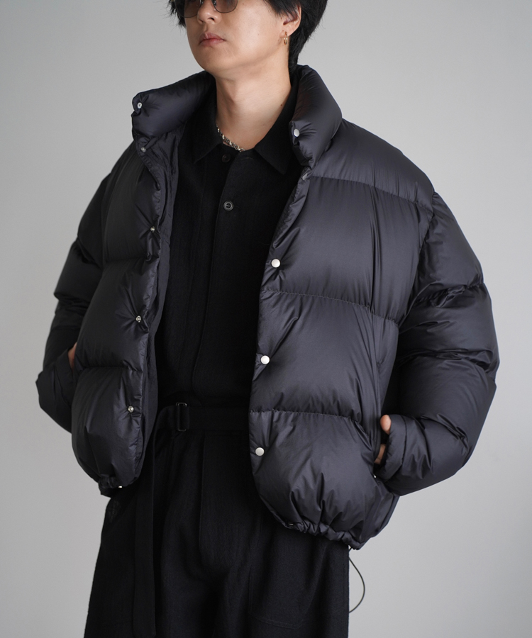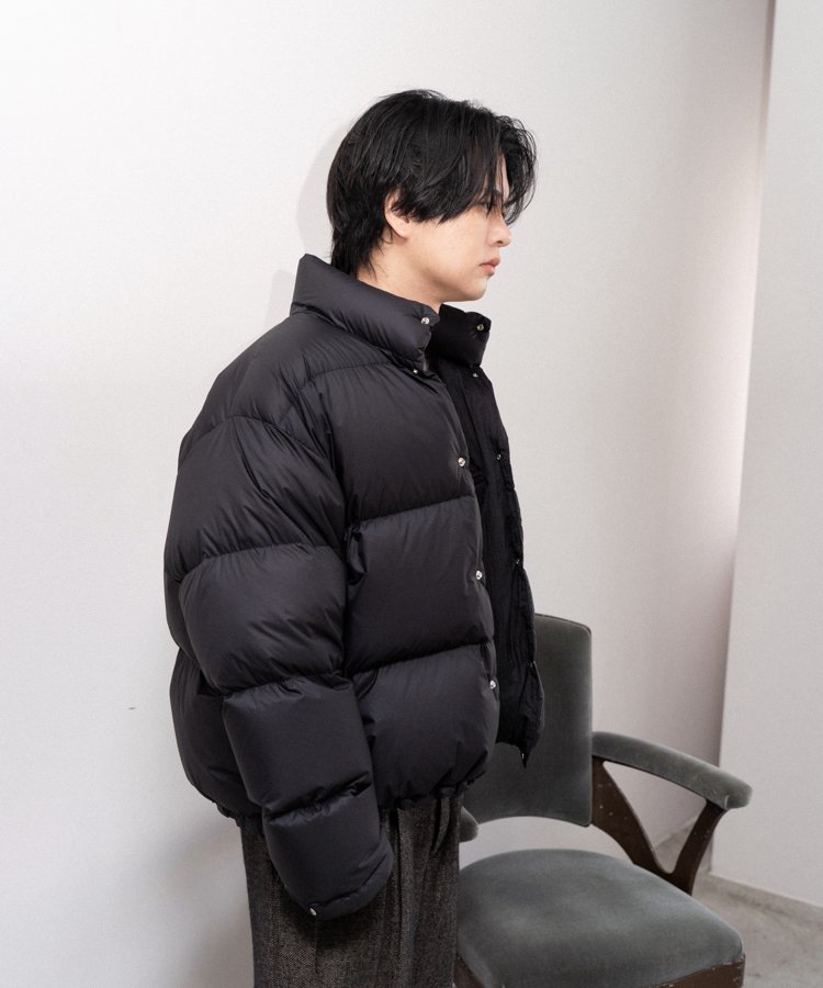 FABRIC : NYLON 100%FILLING : DOWN 90% FEATHER 10%LINING : NYLON 100%FP : 833小松マテーレ製の7デニール超軽量ナイロンリップストップを採用。極細のナイロン糸に仮撚り加工を施すことで、表面感と膨らみを持つ独特の風合いを実現しています。※型崩れを防ぐため、ドライクリーニングを推奨します。