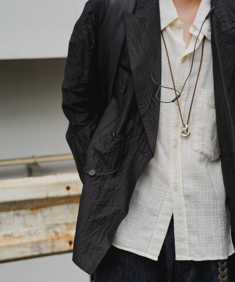 シルクとリネンの染色差からなる奥行きのある色味が独特な表情を生み出します。