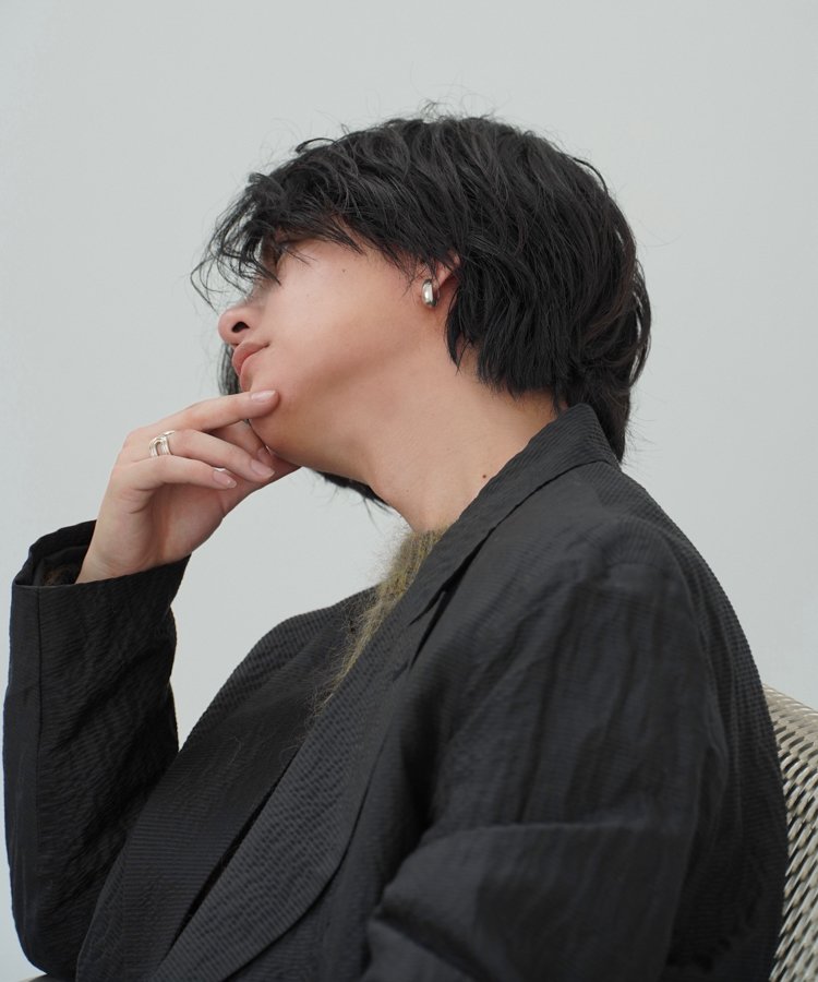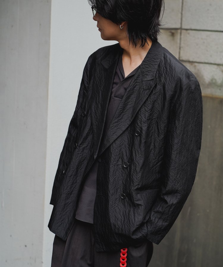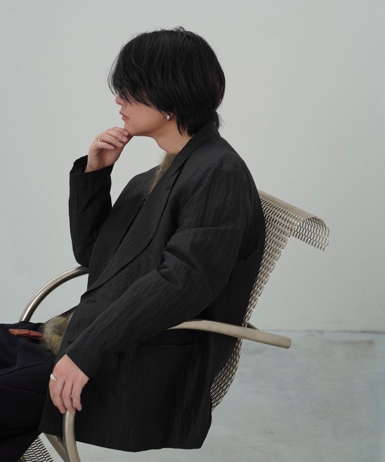 胸のマニュプレダーツと脇には細腹を取り入れ、テーラードらしい立体的なフォルムを構築。