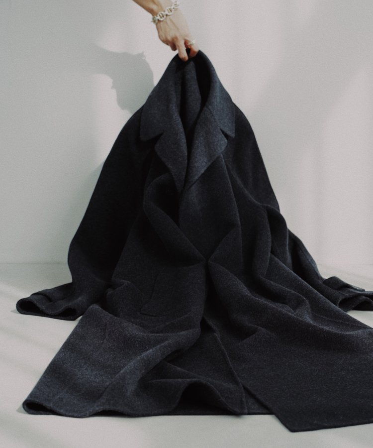 経糸にブラック、緯糸にはチャコール杢の糸を掛け合わせ、奥行きのある色味を実現。