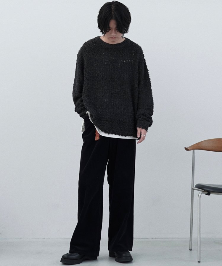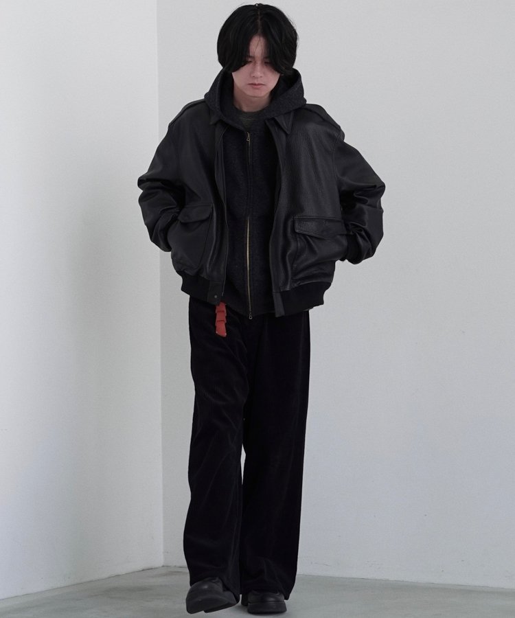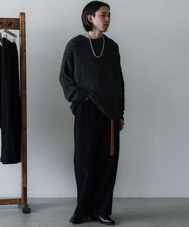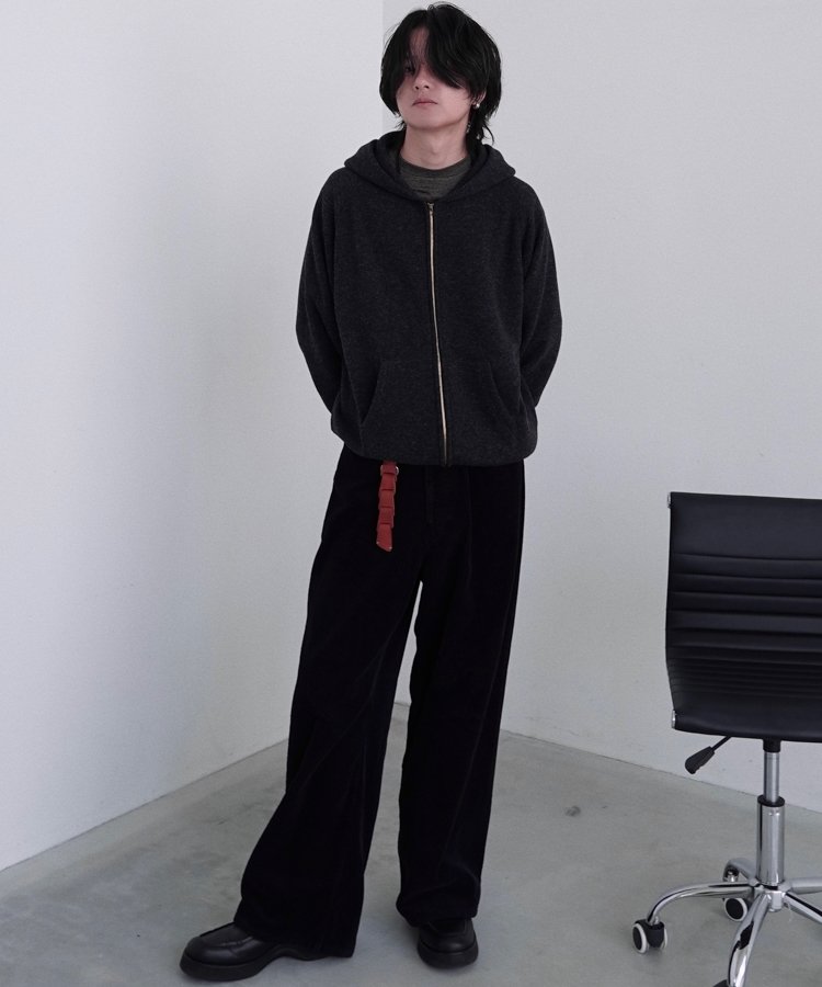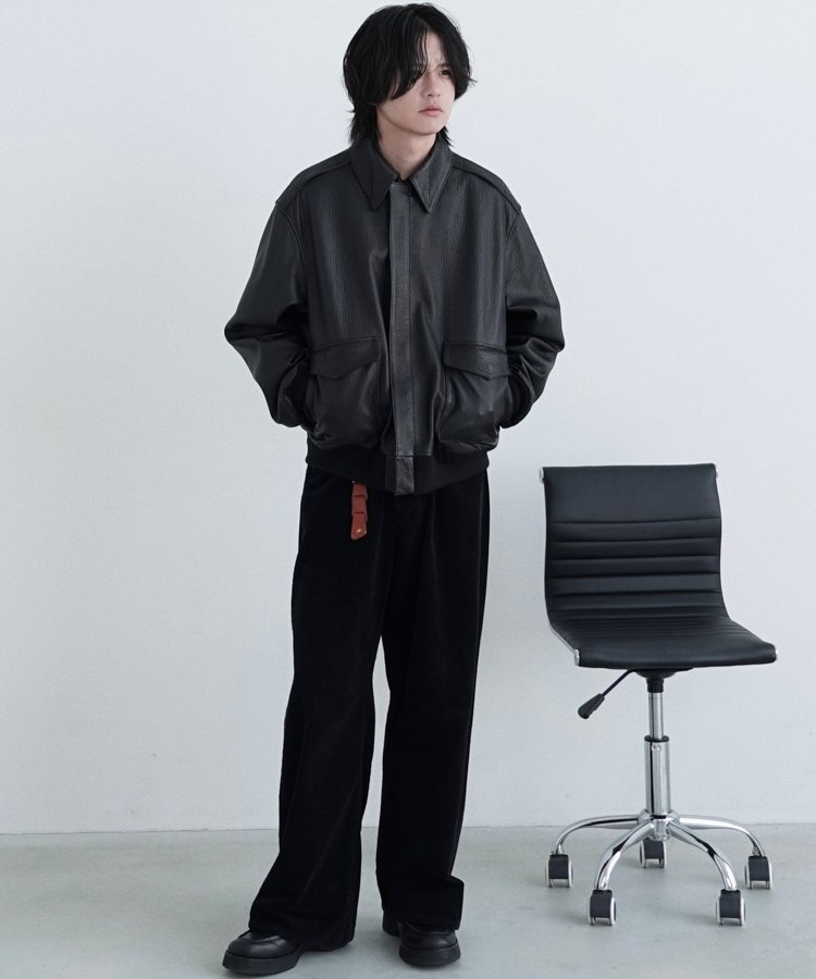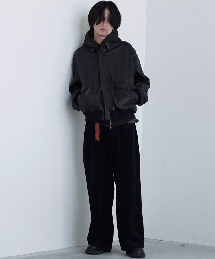 高密度に織り上げた5Wの太畝コーデュロイにウィンス加工を施し、膨らみとドレープ感を引き出しました。