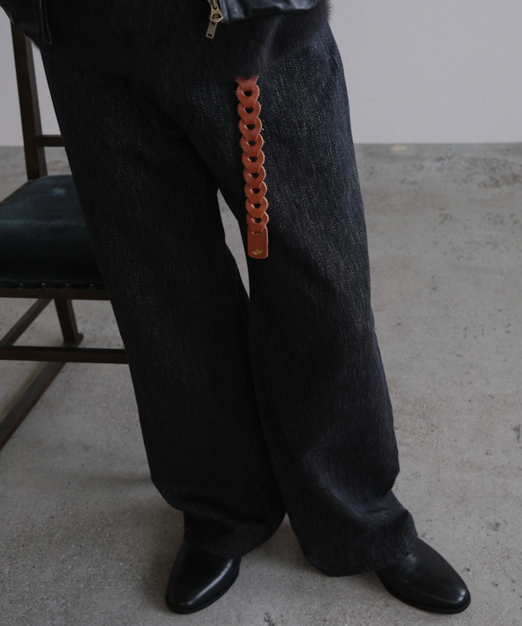 伸縮性のあるレザーチェーンを75ケ使用する設計をしています。(ロゴパーツは除く)