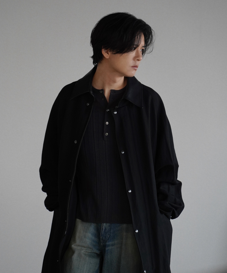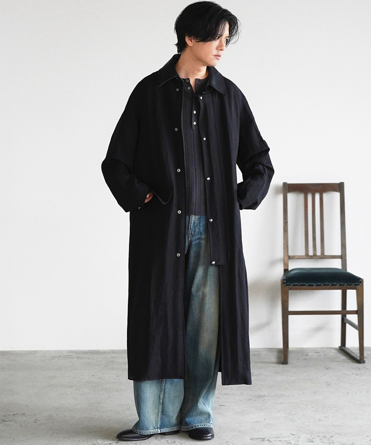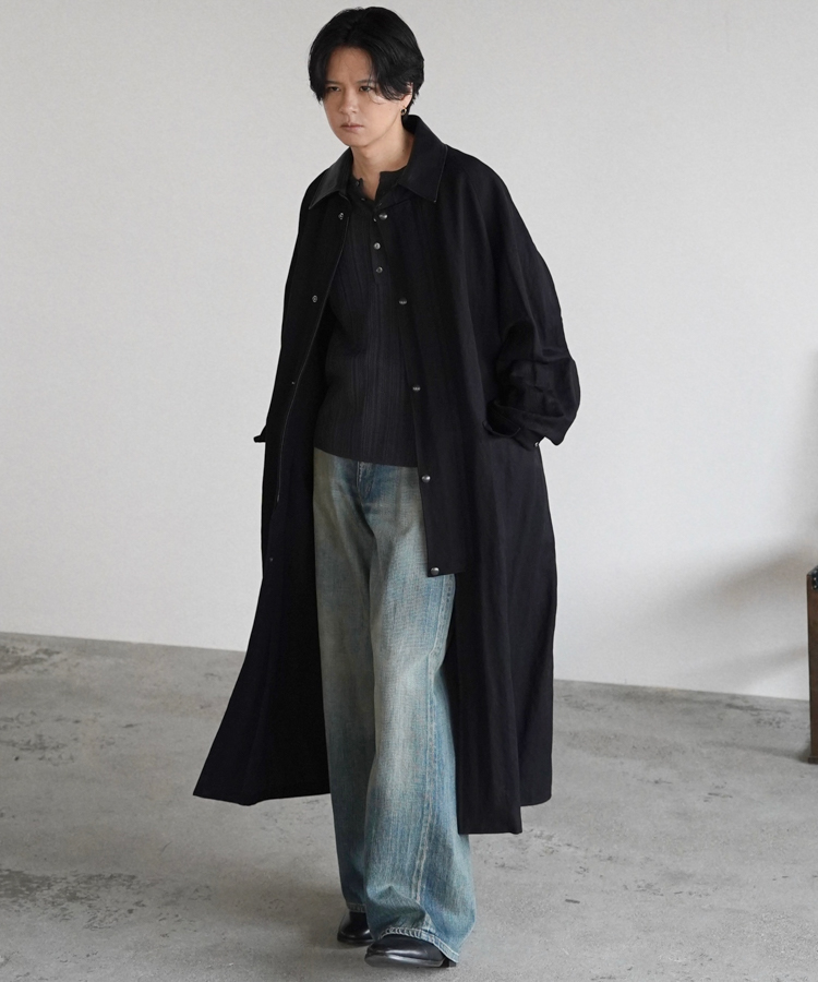 リネン特有のドライなタッチとレーヨンのしなやかな落ち感を活かしつつ、アクリルを混紡することで軽やかな風合いに仕上げています。