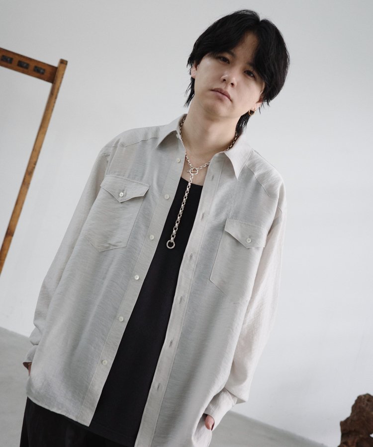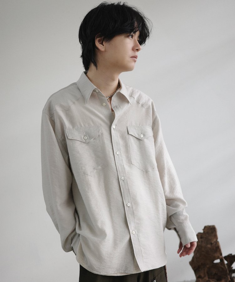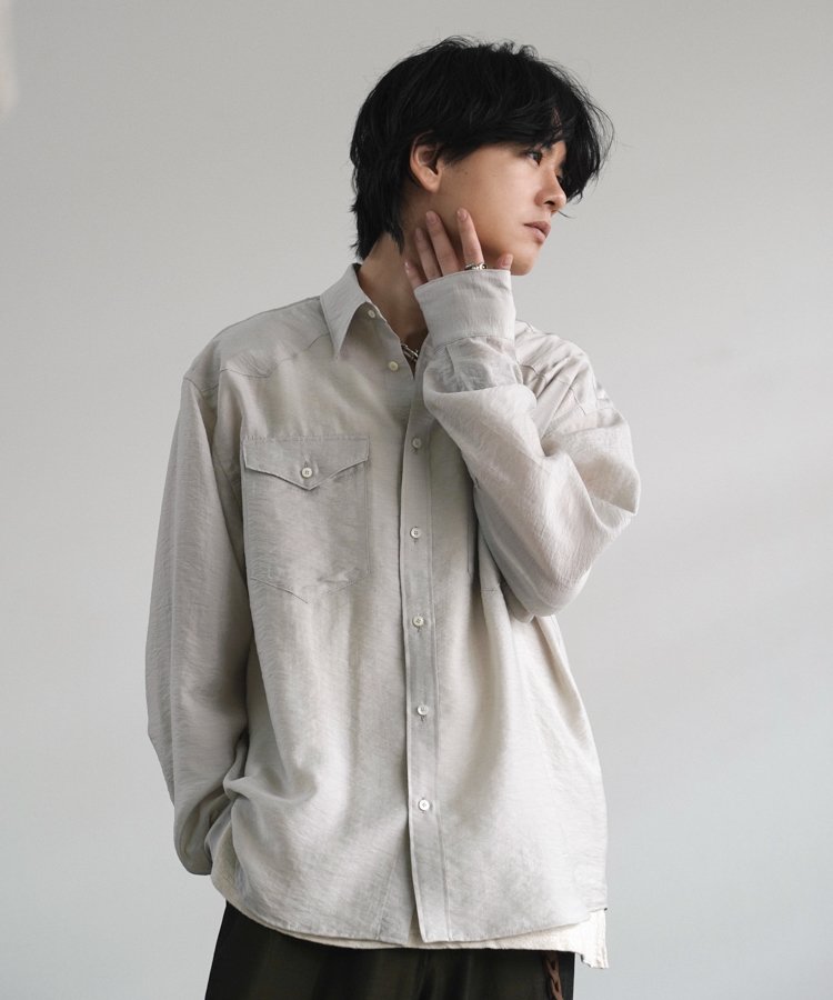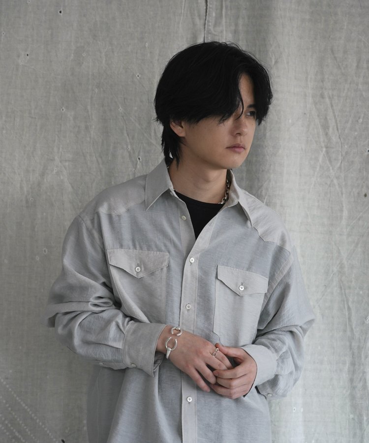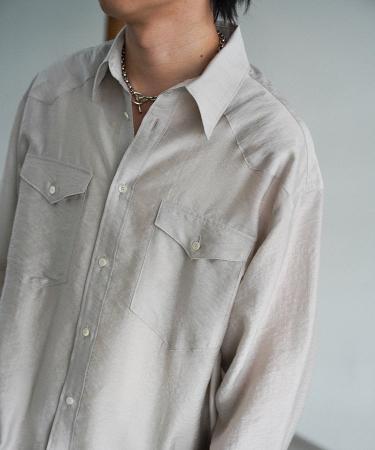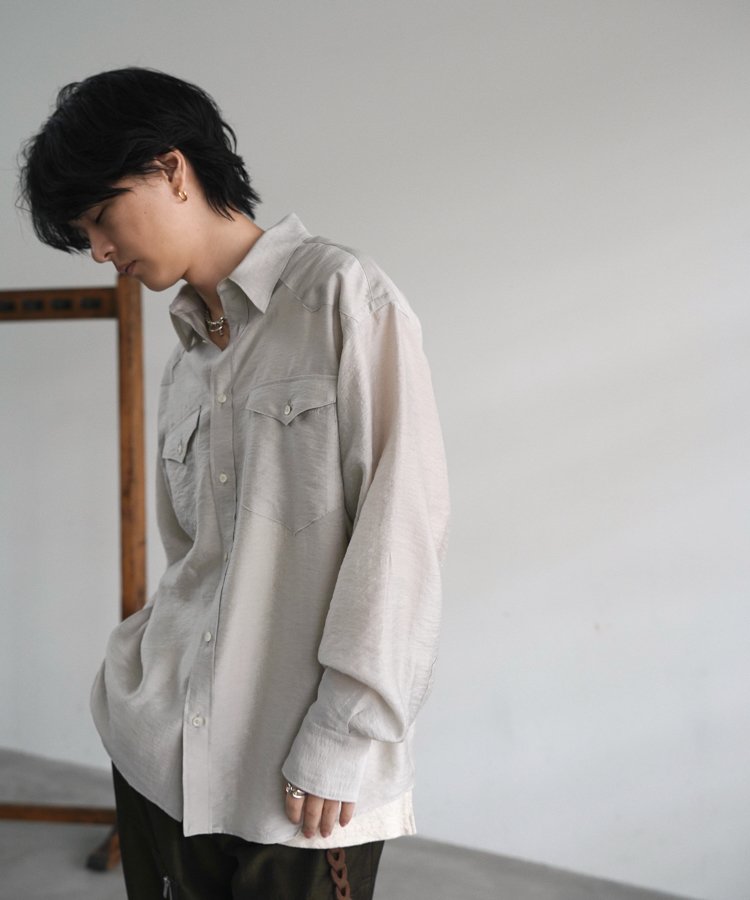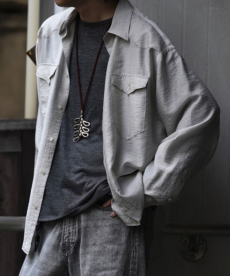 ワークウェアであるウエスタンシャツをあえて繊細な素材に落とし込むことで新たなバランスをデザイン。