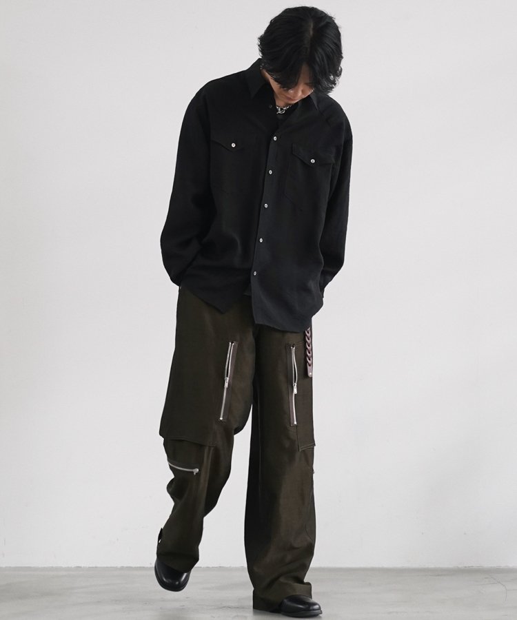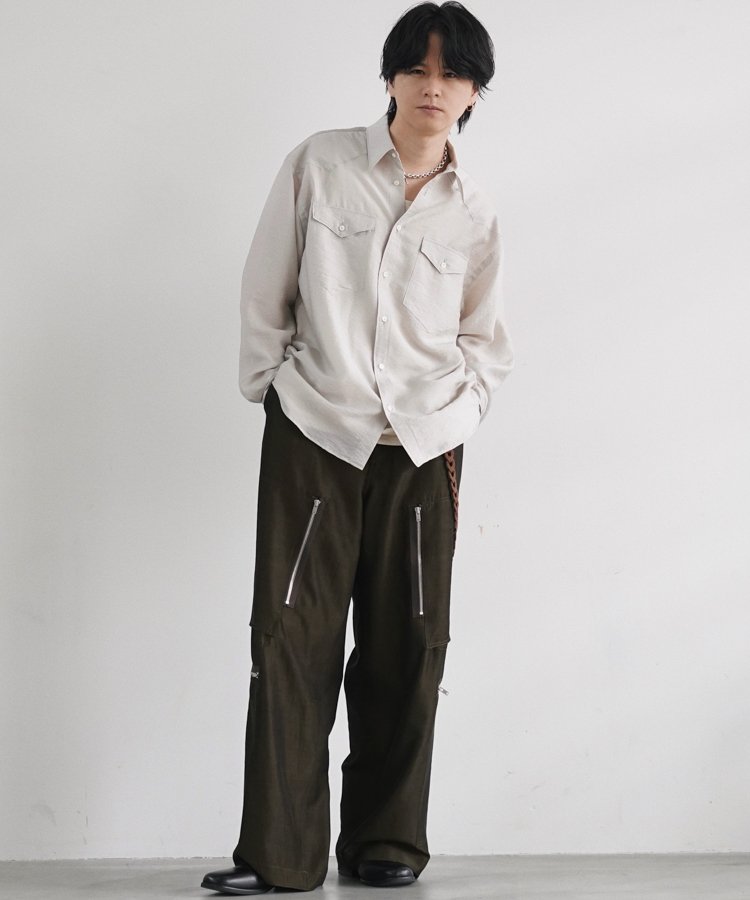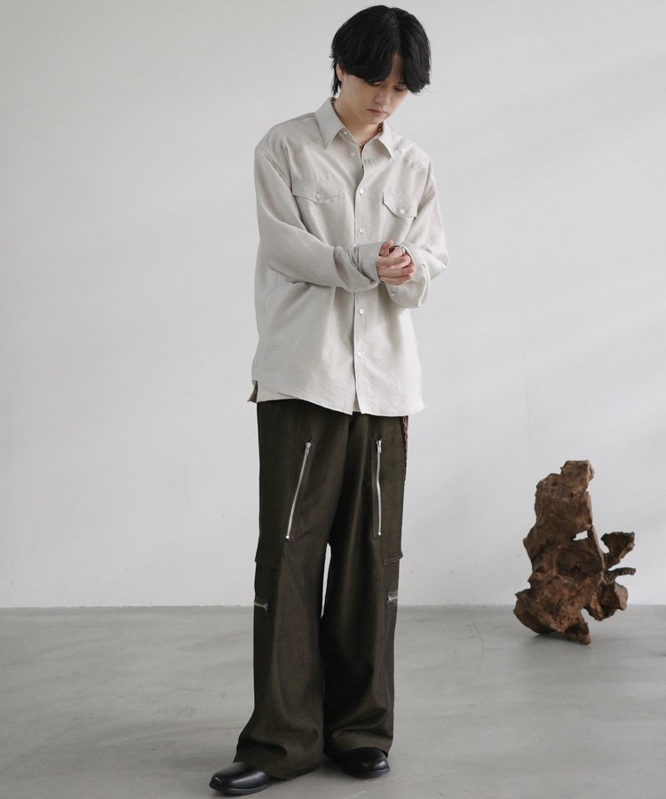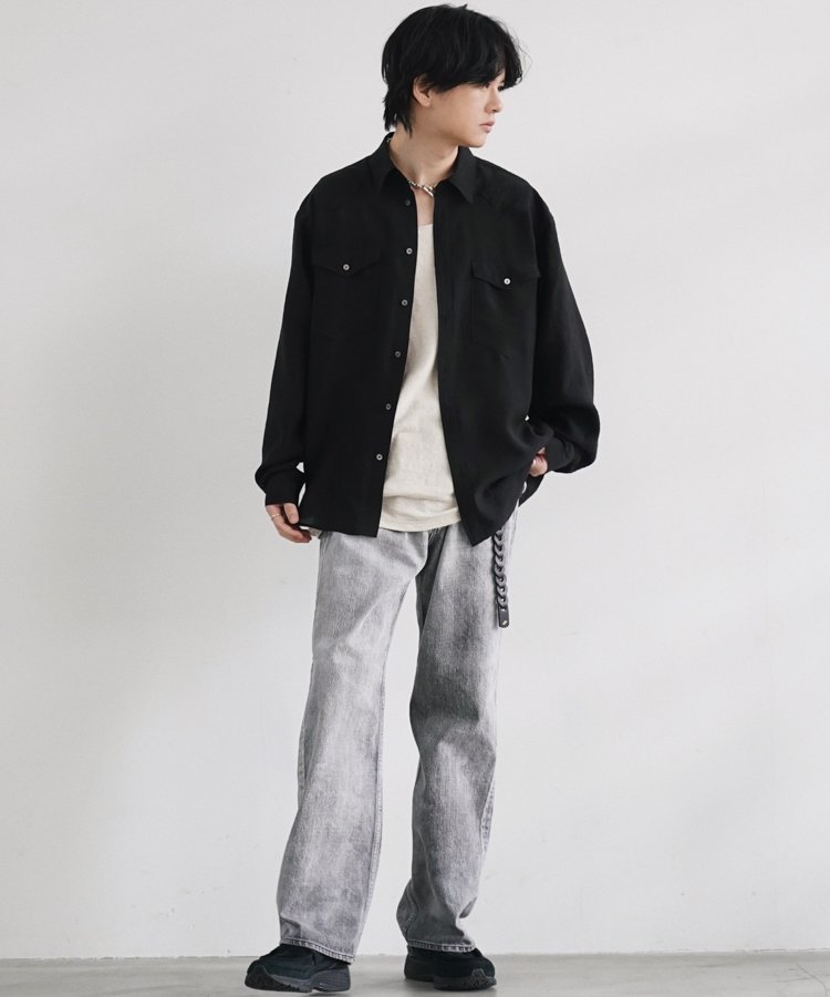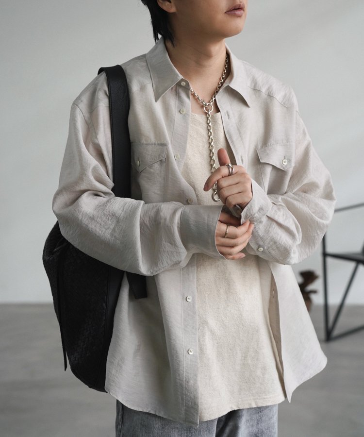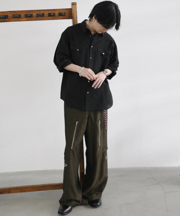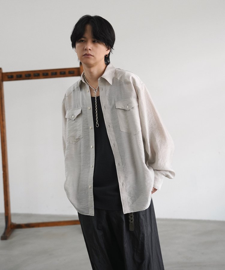 ワークウェアであるウエスタンシャツをあえて繊細な素材に落とし込むことで新たなバランスをデザイン。