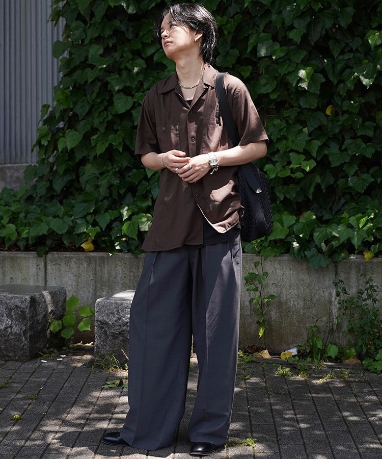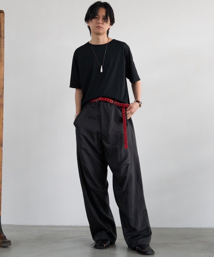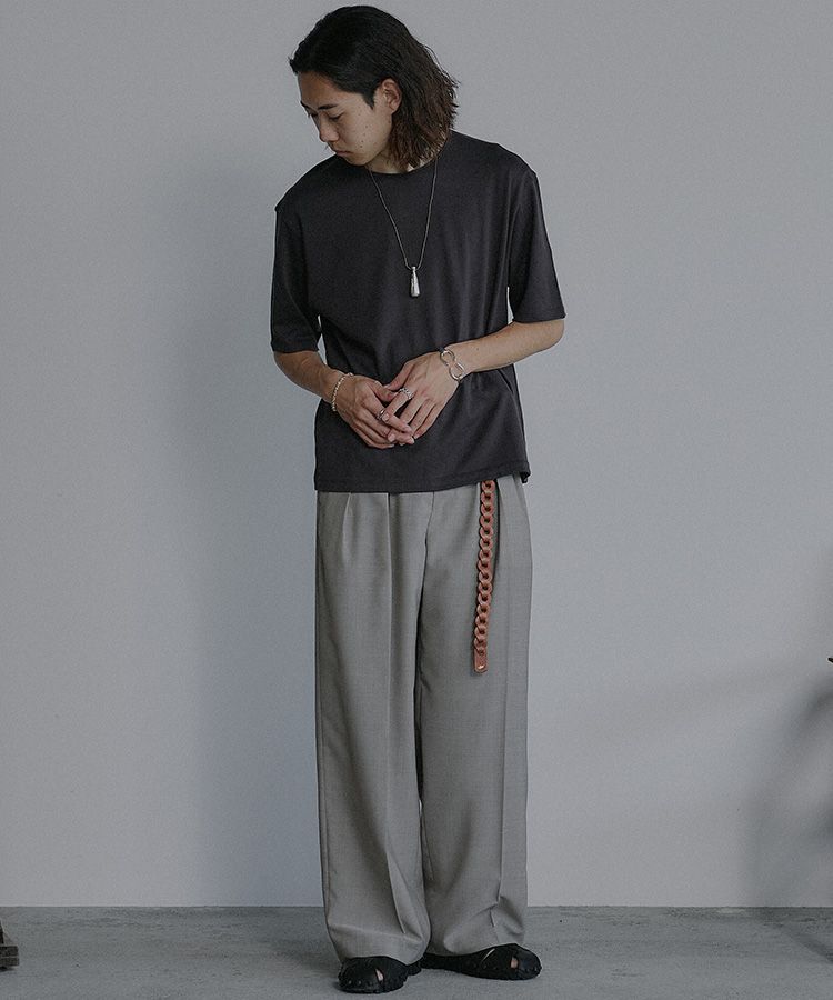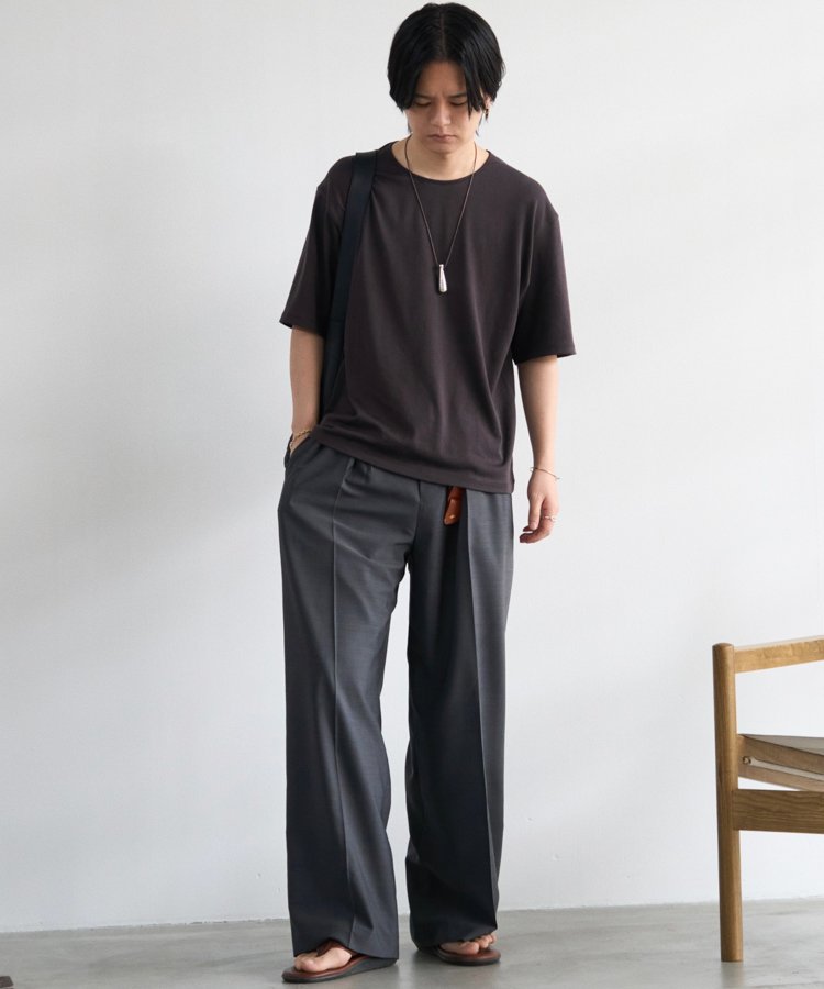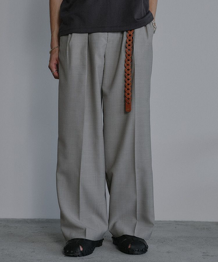 ヴィンテージARMANIをオマージュし、ボックスプリーツと脇側のインタックを組み合わせたワイドストレートシルエット。