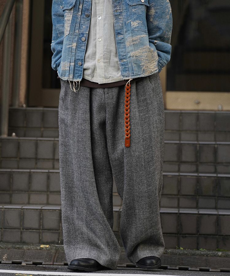 1920年代にオックスフォードの学生が広めた、”OXFORD BAGS"をソースに製作したストレートバギーシルエット。
