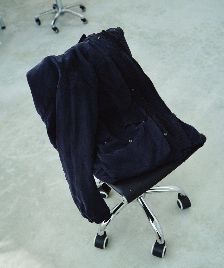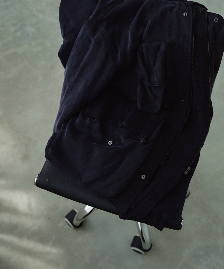 裏地と表地を同時に縫製するミリタリーアイテムに見られる特殊な仕様を採用。