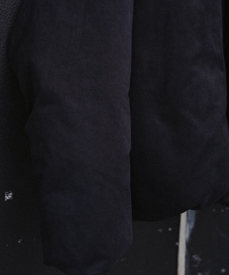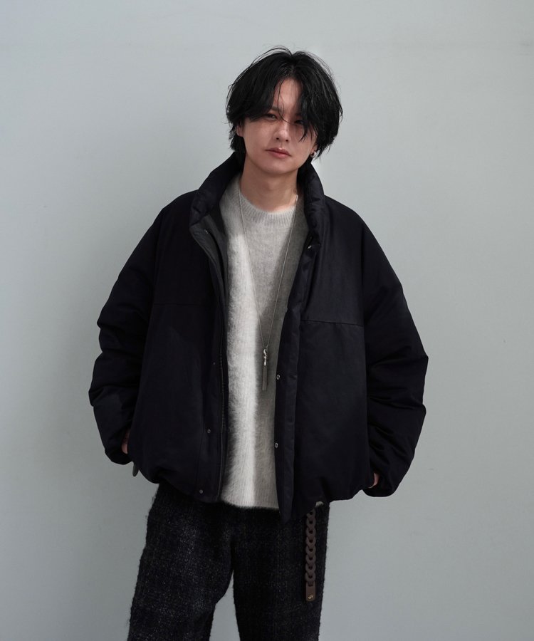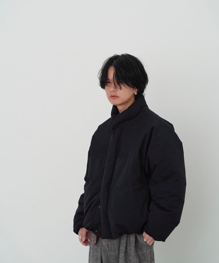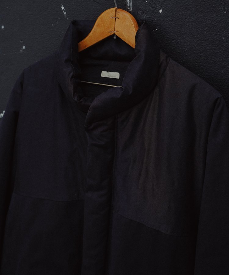今シーズンは、シルエットをコンパクトにしたショート丈。さらに、ミリタリーライフジャケットに見られる特殊な襟デザインを採用しています。