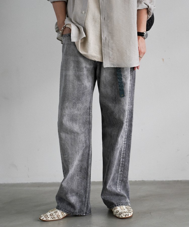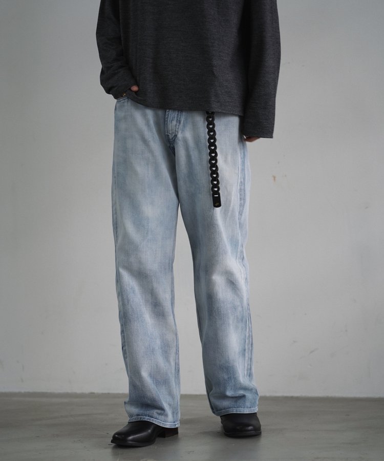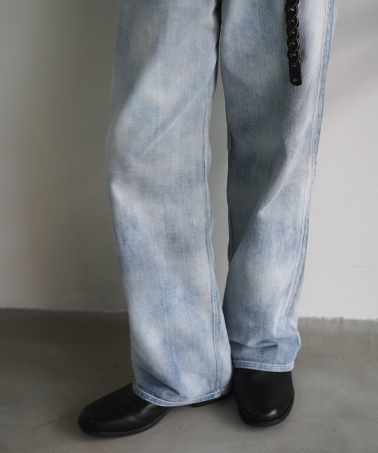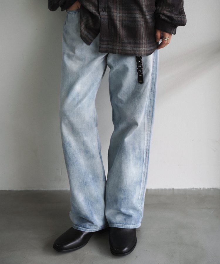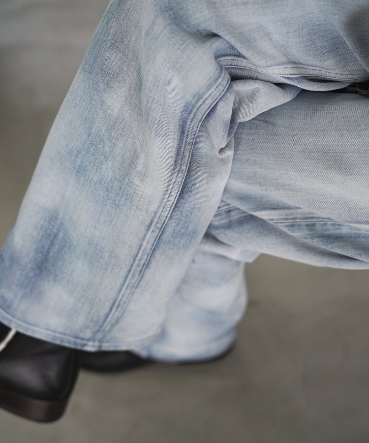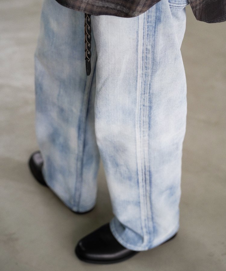 さらにブリーチ加工と白の顔料ペイントを入れ、再度手作業で整えることで