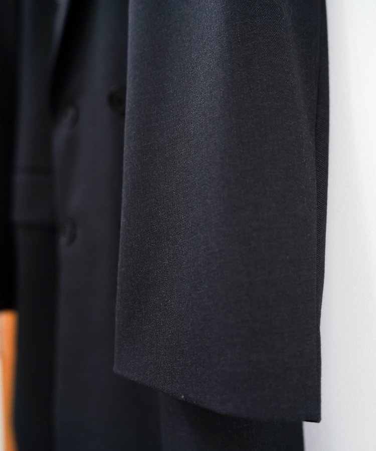 FABRIC : WOOL 50% NYLON 25% POLYESTER 25%LINING : COTTON 53% CUPRA 47%SLEEVE LINING : CUPRA 100%2/48のチャコール杢糸を使用したギャバジン。インビスタ社のCORDURAナイロンを混紡し、強度を高めながらもしなやかな風合いを実現しました。MADE IN CHINA