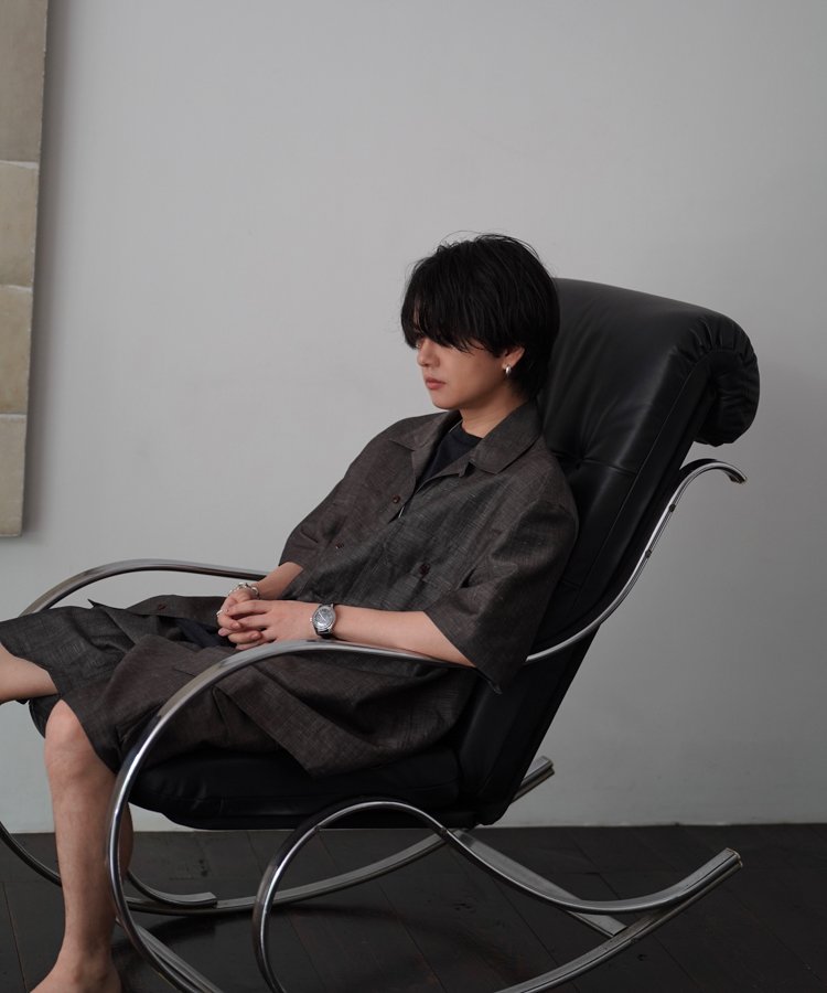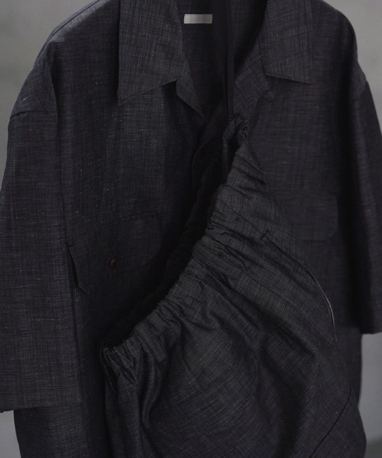 WOOL 54% LINEN 46%クラシカルなピンヘッド組織を経糸には2/72エクストラファインメリノ、緯糸は1/60の細番手のリネンを打って織り上げました。細番手リネンの細かなシワと、エクストラファインメリノ特有の滑らかな肌触りが調和した上品な雰囲気を醸し出す素材です。タンブラー加工で仕上げ、リネンの横張り無くした柔らかな着心地を追求しています。