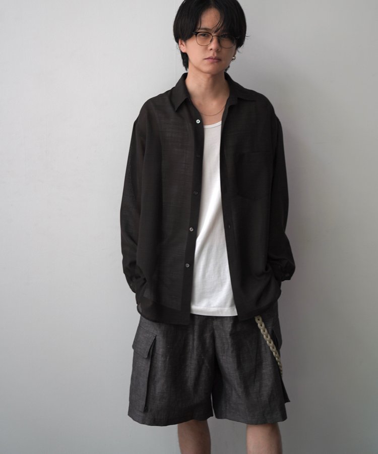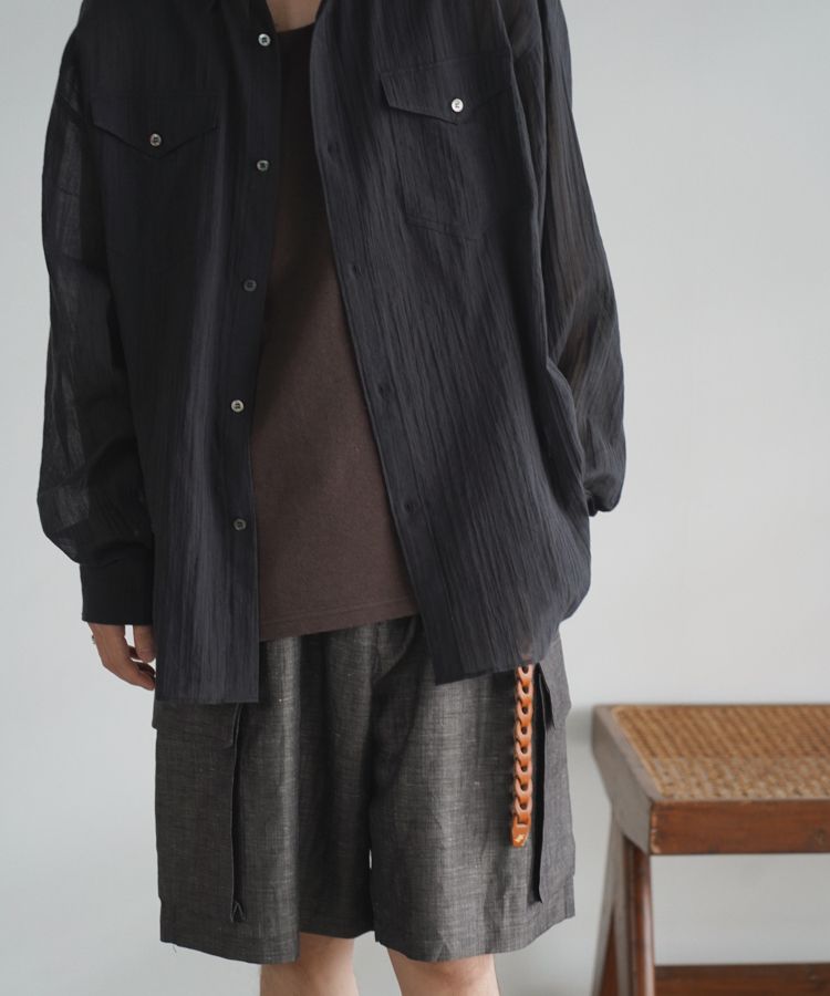 • LINEN WOOL PINHEAD SHORTS