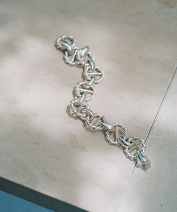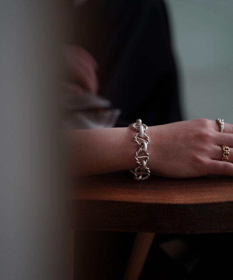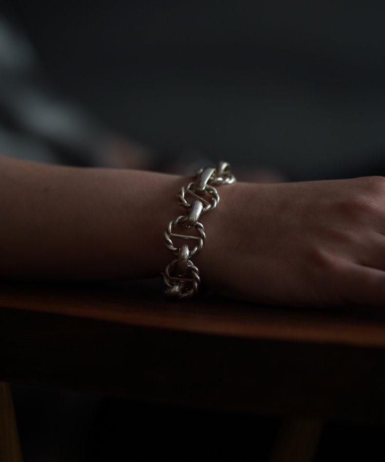 捻ったロープのようなテクニックをブレスレットに落とし込みました。
