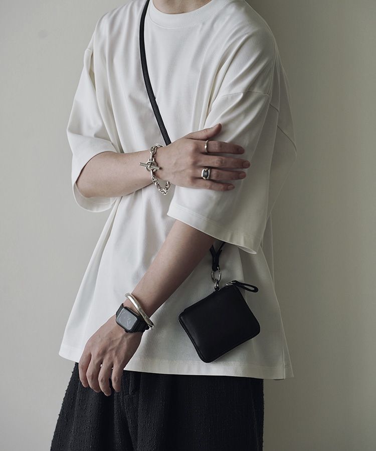 ポケットに入るコンパクトなサイジングにし、ジップにはエクセラファスナーを採用し、内装も贅沢にレザーを配しています。