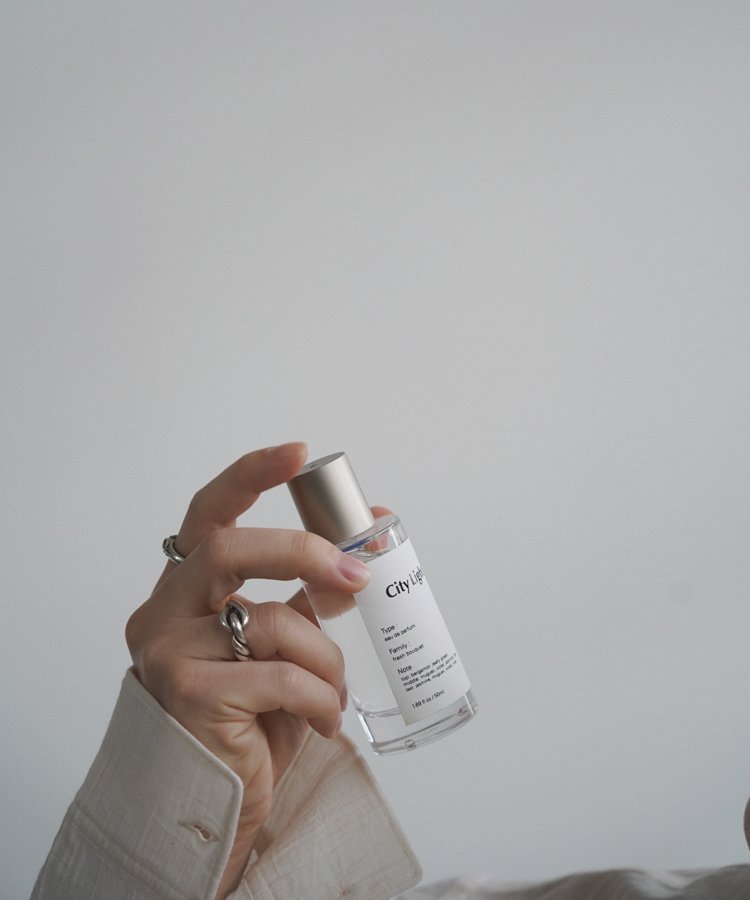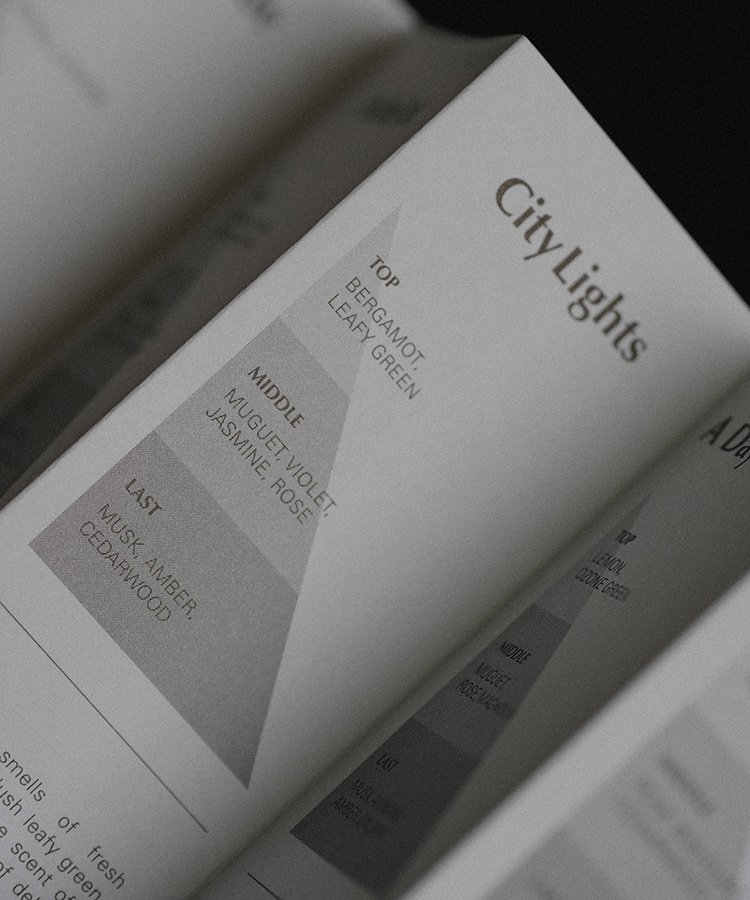 ラストはムスクとシダーウッドのほんのりパウダリーでスイートな香りで全体を調和させています。
