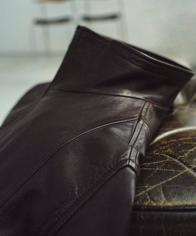 製品洗いとタンブラー加工を施すことで、ヴィンテージの趣きを感じられるダークブラウンの色味を実現。