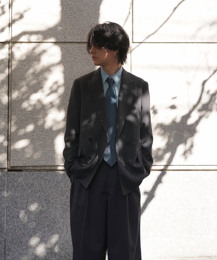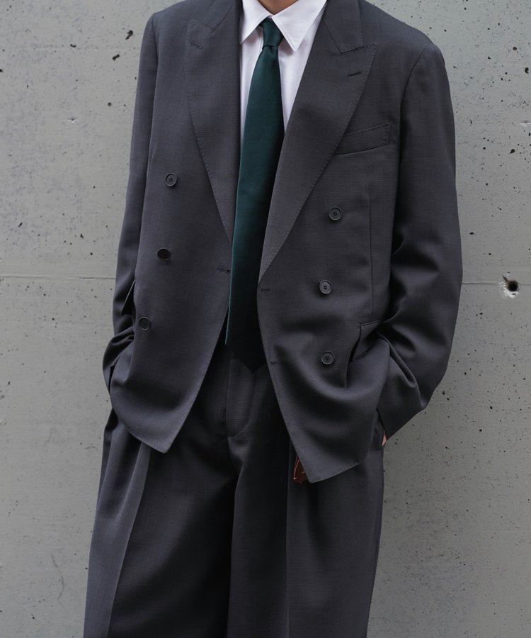 1930年代のクラシックなスーツスタイルをソースにした、ダブルブレストのテーラードジャケット。