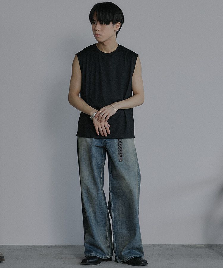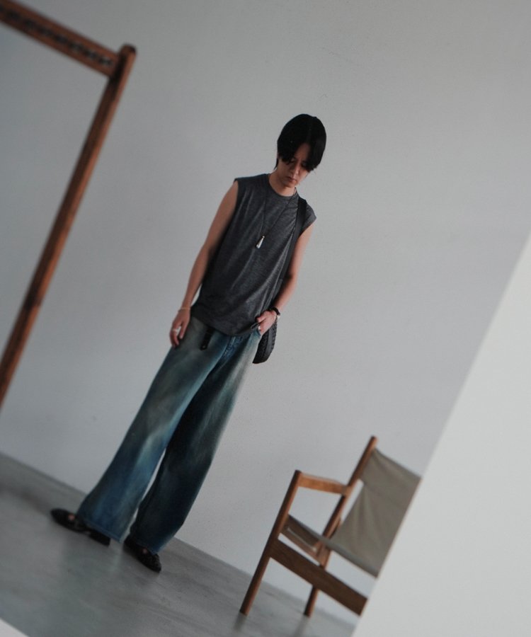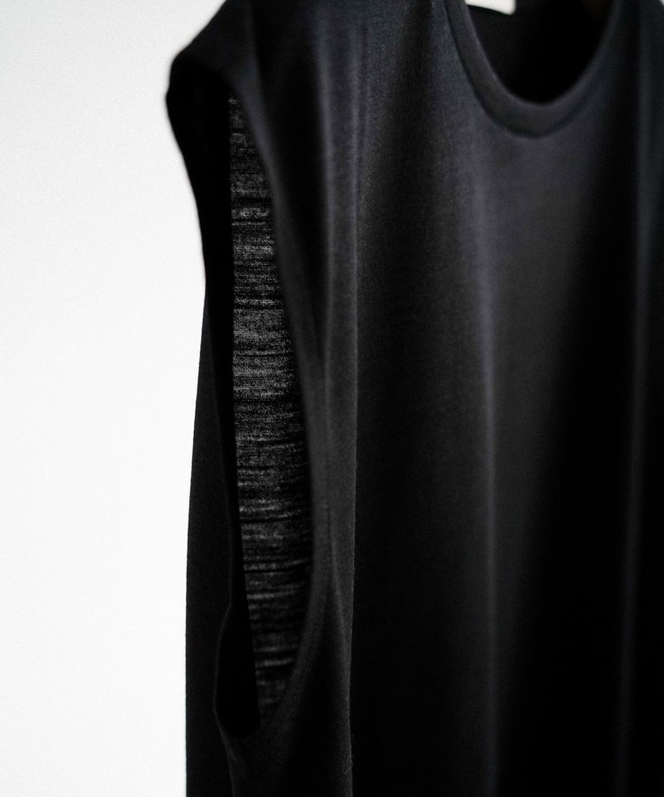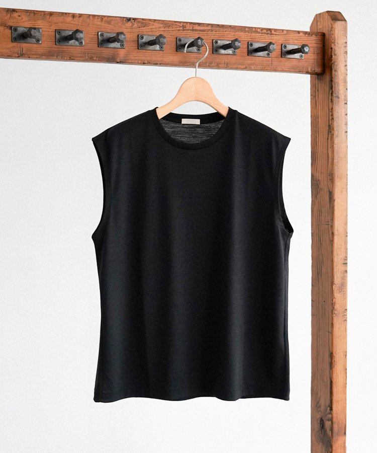 アームホールが開きすぎないよう調整を重ねた絶妙なシルエットが大きな特徴のノースリーブT。