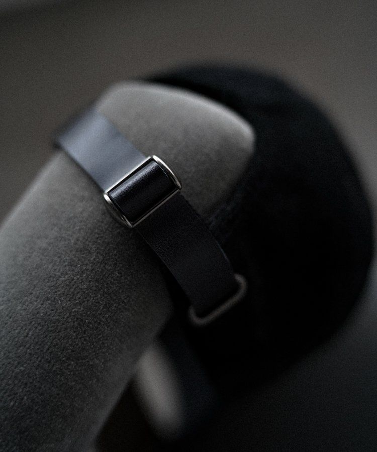一般的なキャップに見られる頭頂部の天ボタンを排除し、ミニマルな雰囲気に仕上げました。