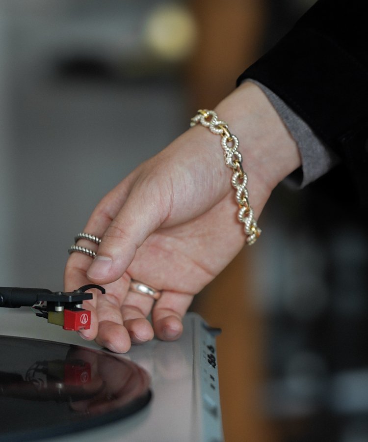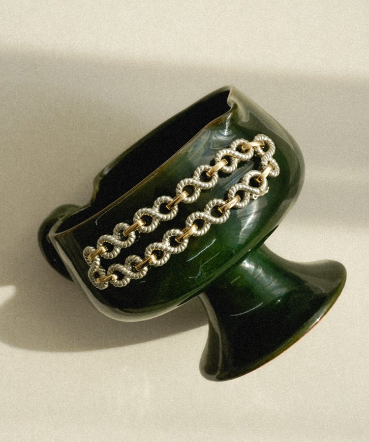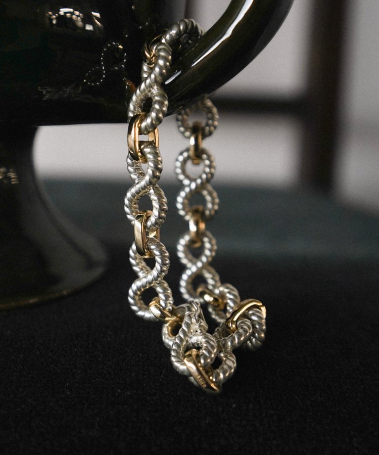 シルバーとゴールドのコントラストが、手元に静かな存在感を与えます。