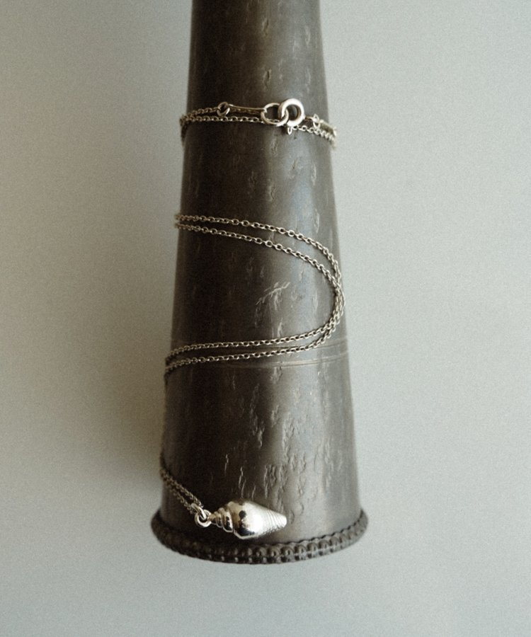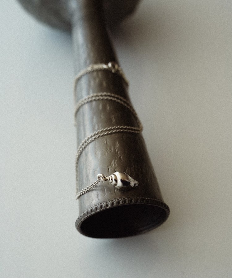 華奢なチェーンを合わせることで、有機的な美しさと都会的で端正な印象を両立させました。