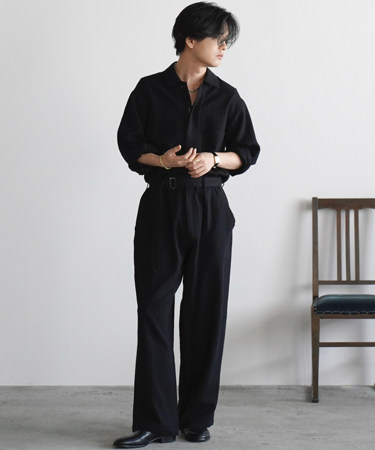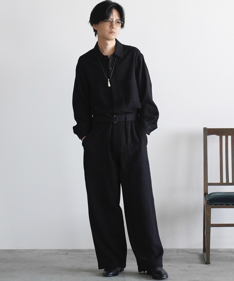 ウエストにはベルトを配し、ブラウジングによるシルエットの変化が可能。