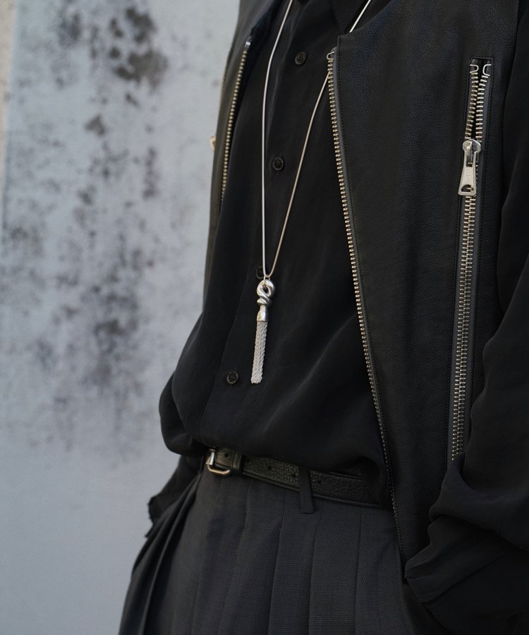 傘のイメージと連動し、雨が滴る様子を表現したチェーンをペンダントと組み合わせた新たなアプローチのネックレスです。