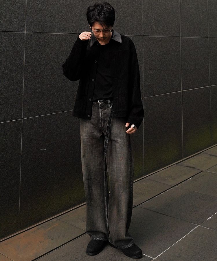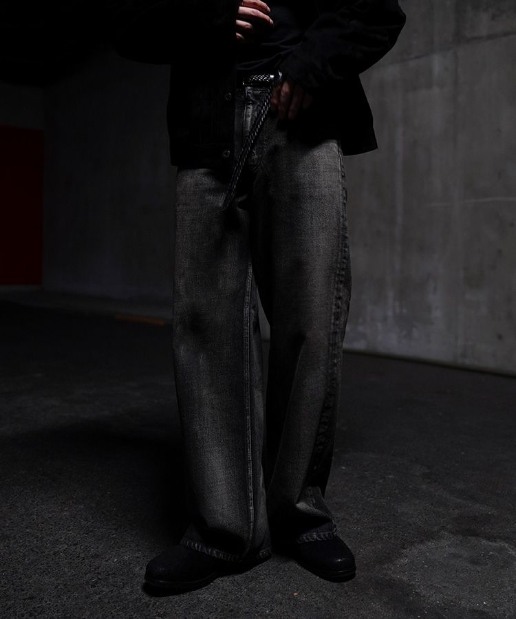 COTTON 100%岡山県の井原で織り上げた13.5ozのデニム素材。経糸に7/1、緯糸に10/1を打ち、経と緯で番手差を付けることで、ヴィンテージデニムらしい”縦落ち”の加工感を再現した設計です。ヴィンテージデニムの加工感を取り入れながらも、霧がかったフェード感を加えることで、ヴィンテージデニムにはない独特の違和感を表現しています。