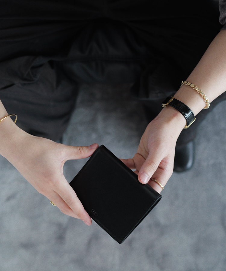 薄型に設計したコンパクトな二つ折りウォレット。